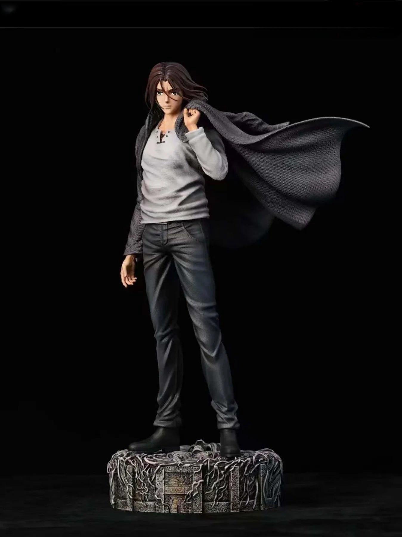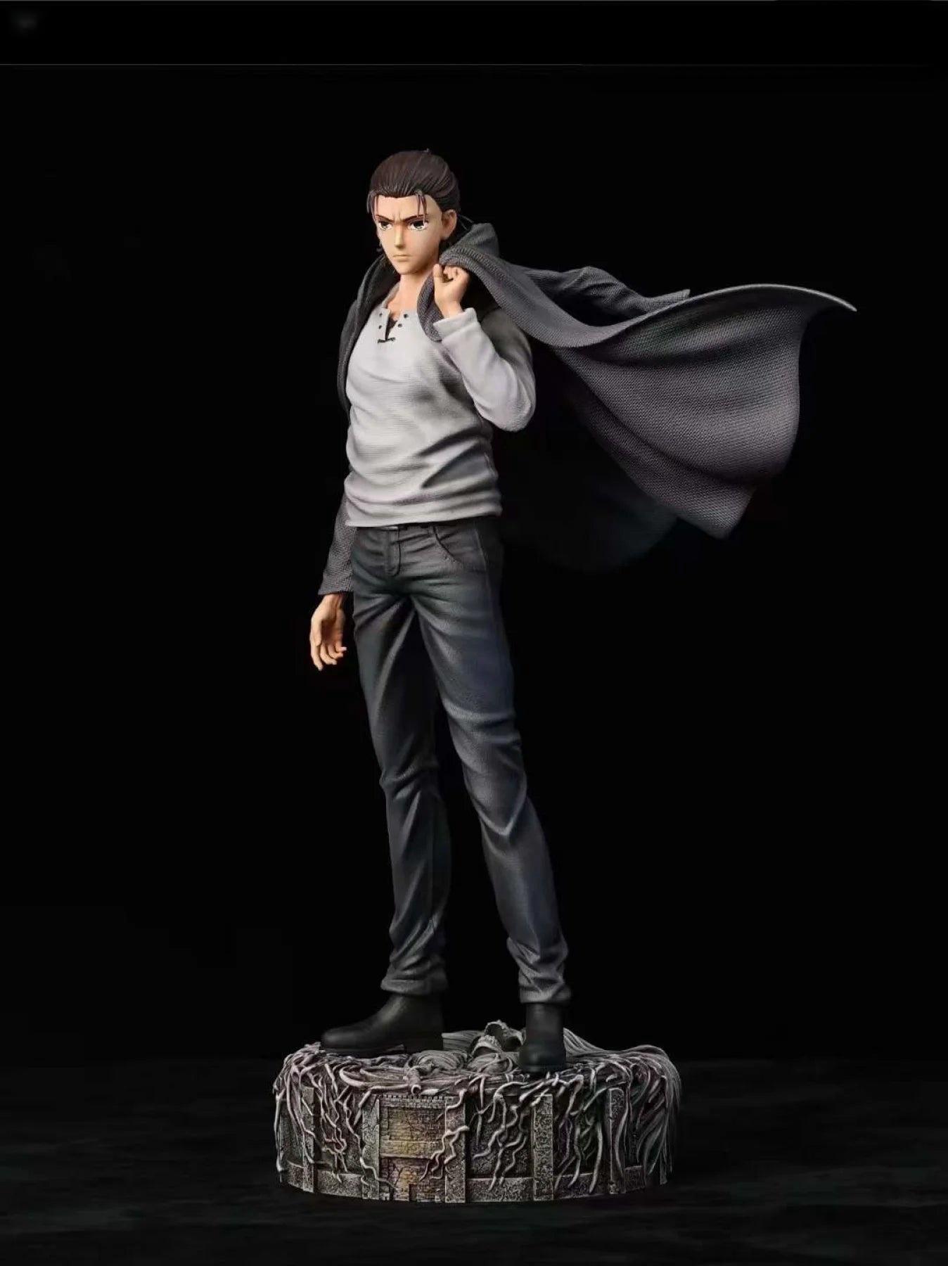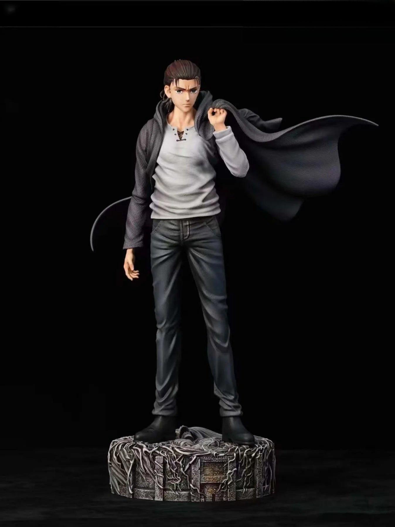 "Introducing our exquisite Attack on Titan Eren Yeager Statue. Crafted with intricate detail, this statue captures the fierce strength and determination of Eren Yeager. A must-have for any fan, this collectible piece elevates your display with its exclusive design. Unleash the titan within and display your love for the series."
