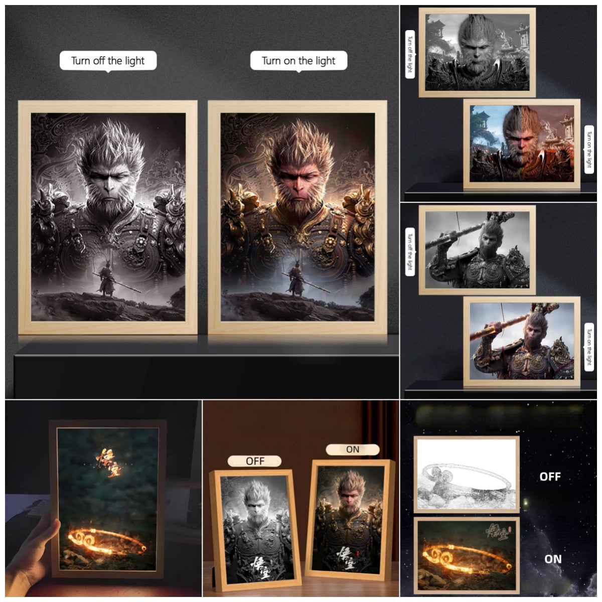 Brighten up your space with the Black Myth: Wukong Memorial Light Painting. This beautifully designed light painting features a stunning representation of the mythological character Wukong, adding a touch of magic to any room. Perfect for fans of Chinese folklore, this light painting is the ultimate decorative piece for your home.