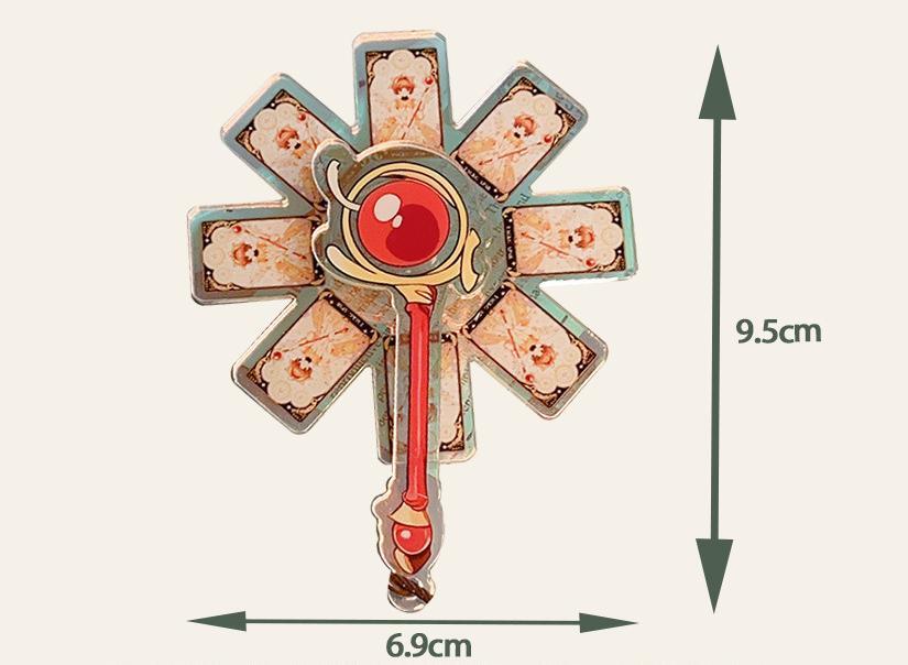 Bring captivating magic to your everyday life with the Cardcaptor Sakura Spinning Magic Wand Keychain. This elegant accessory brilliantly captures Cardcaptor Sakura’s magical charm in a delicate, detailed design featuring an intricate spinning top within a shining star – perfect for any fan of the beloved series. Let this unique keychain enchant you with its timeless, whimsical charm.