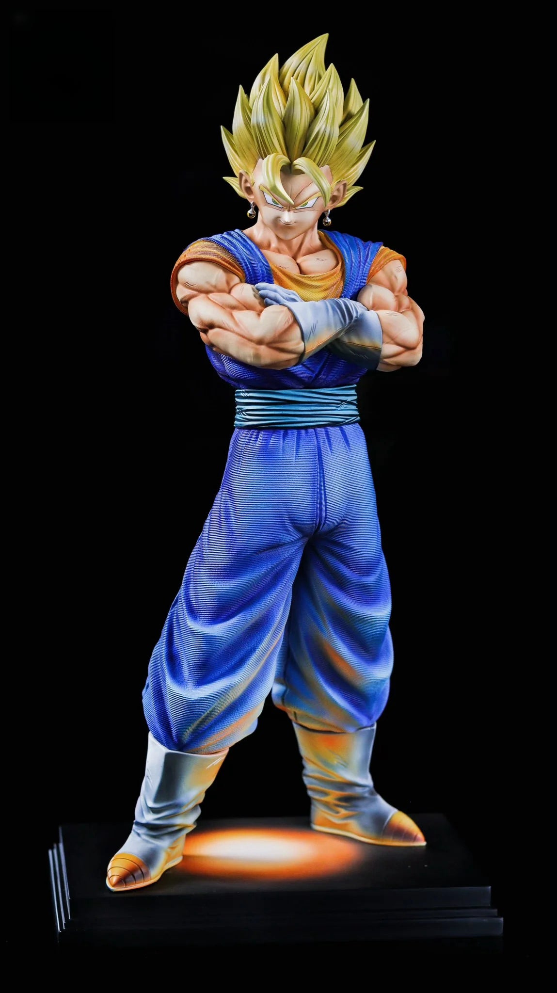 This stunning Dragon Ball Super statue features a dynamic pose of Vegito and Gogeta locked in battle, showcasing their incredible power. Handcrafted with intricate details and vibrant colors, it's a must-have for any discerning fan. Add a touch of elegance to your collection with this premium statue.