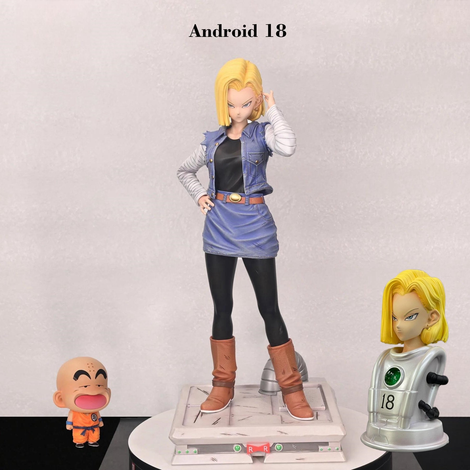 Unleash the power of Android 18 with this stunning Dragon Ball Z statue! Buy 1 and receive 2 bonuses: a interchangeable head accessory bust and a Mini Krillin figurine. Transform your collection and dominate the battlefield. Limited time offer!