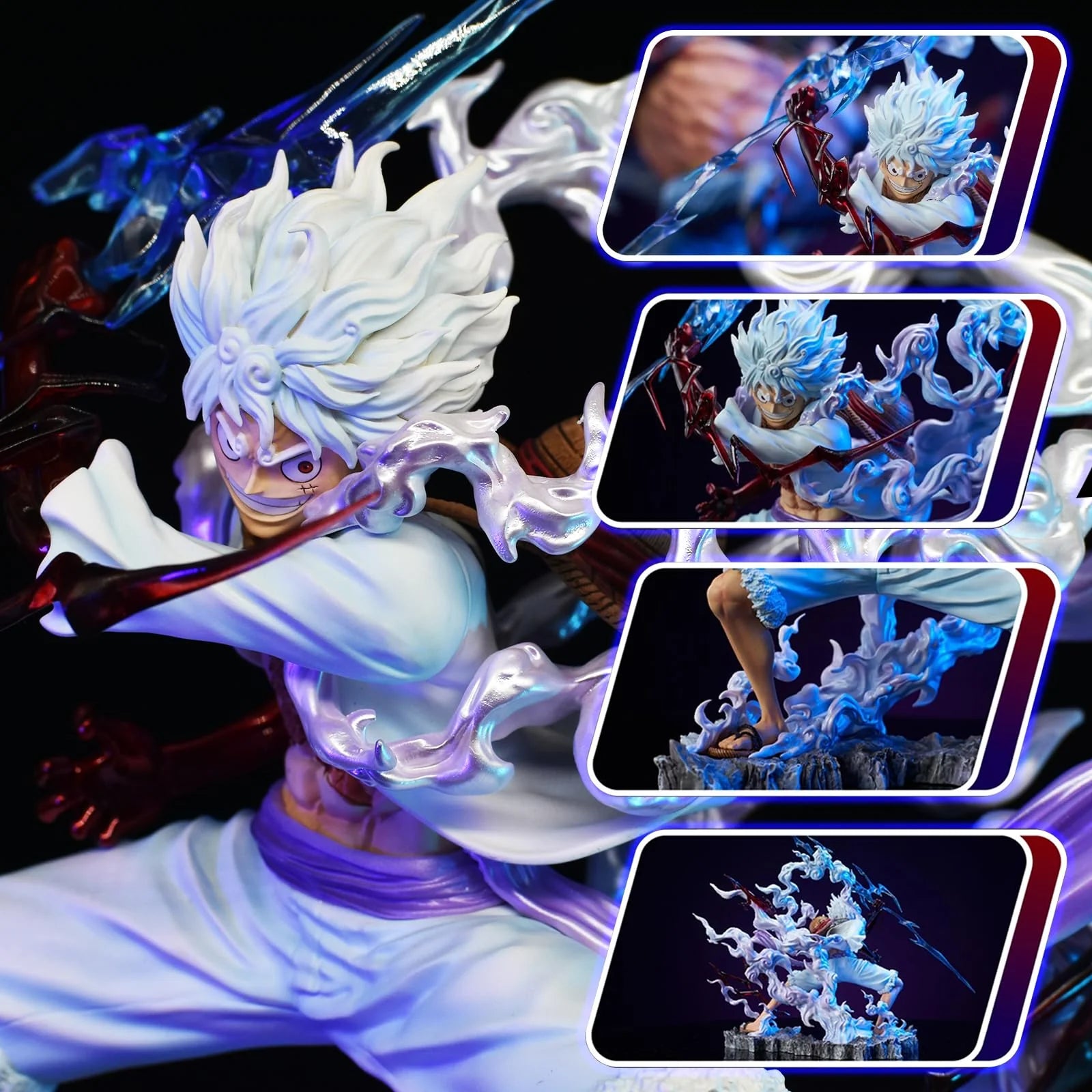 Introducing the One Piece Luffy Gear 5 Figure - a must-have for any collector. This exquisite figure captures the power and strength of Luffy in his Gear 5 form. Made with intricate detail and high-quality materials, it's a true masterpiece that will elevate your collection to new heights.