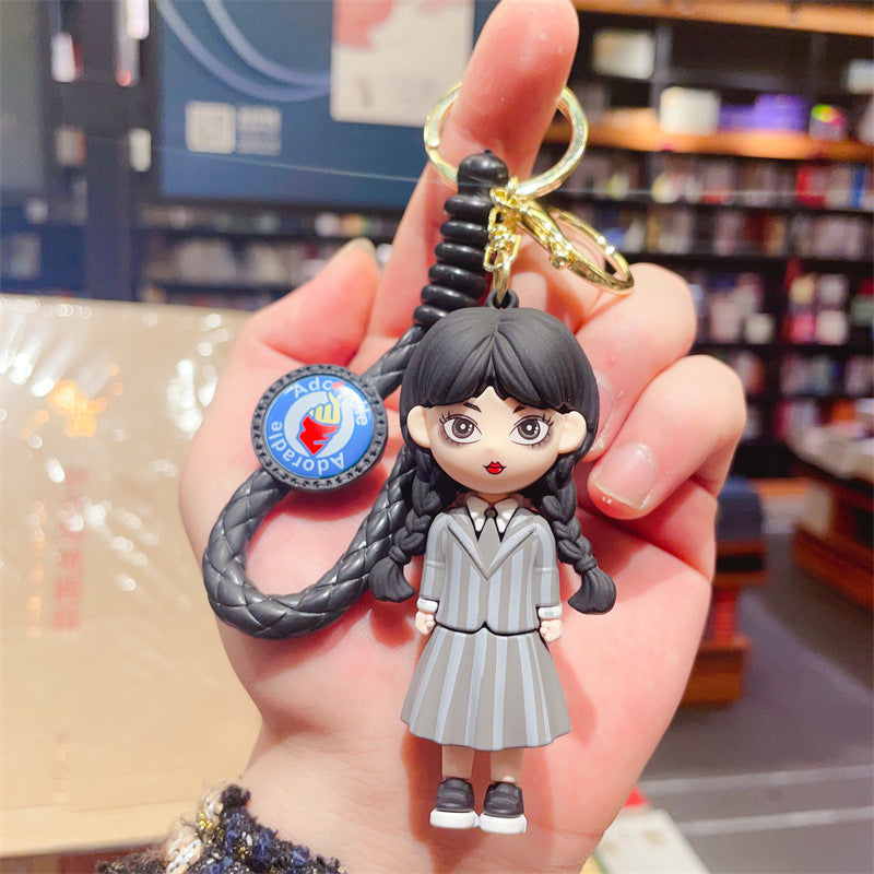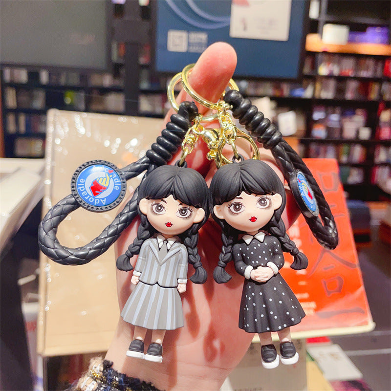 Complete your Wednesday Addams look with this fun keychain! This cute keychain is the perfect accessory to your everyday gothic style, and will ensure that your keys are never too far away. Show your spooky side with this Wednesday Addams keychain!